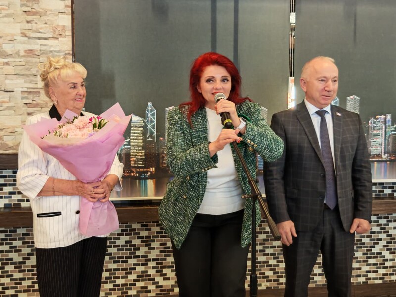 Глава Кировского района Юнус Ибрагимов и заместитель главы администрации по ЖКХ и строительству Мария Нилова поздравили всех собравшихся с этим замечательным праздником и подарили цветы председателю Совета ветеранов Кировского района Галине Смирновой.