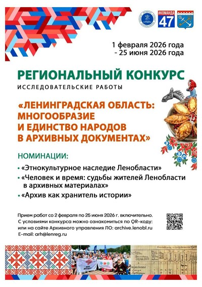 Приглашаем к участию в конкурсе «Ленинградская область: многообразие и единство народов в архивных документах»