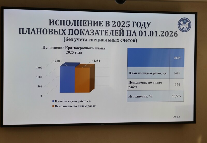 В соответствии с региональной программой в 2025 году был запланирован капремонт 985 многоквартирных домов и выполнение 1418 видов работ при общем объеме финансирования 7,3 млрд рублей. По состоянию на 1 января 2026 года выполнено 1354 вида работ (или 95,5% от плана). Что касается невыполненных работ, по ним либо перенесены сроки, либо приостановлено их проведение в связи с объективными причинами.